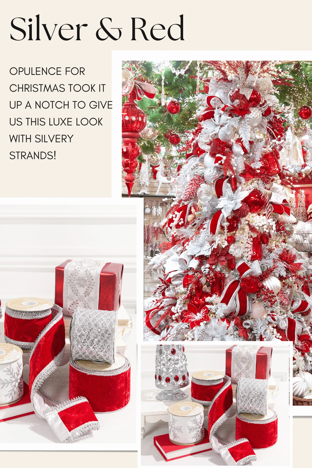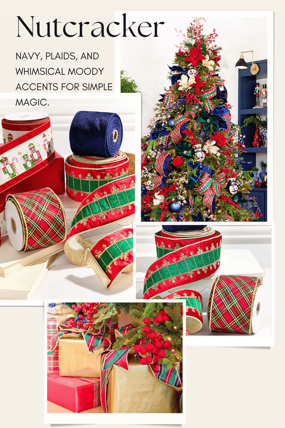 Accent Ribbon: Used at the end, this ribbon fills gaps and adds pops of color in areas that need a little extra oomph. Accent ribbons are your finishing touch — they make the tree feel cohesive and full.