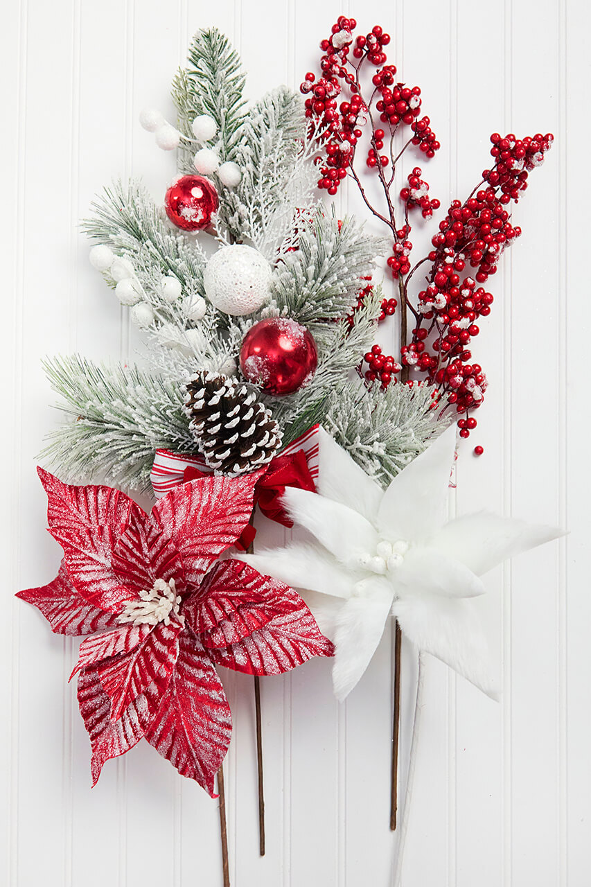 Our Candy Cane Lane Bundle includes coordinating floral clusters — snowy poinsettias, playful berry picks, and frosted foliage. Our best tricks are to: