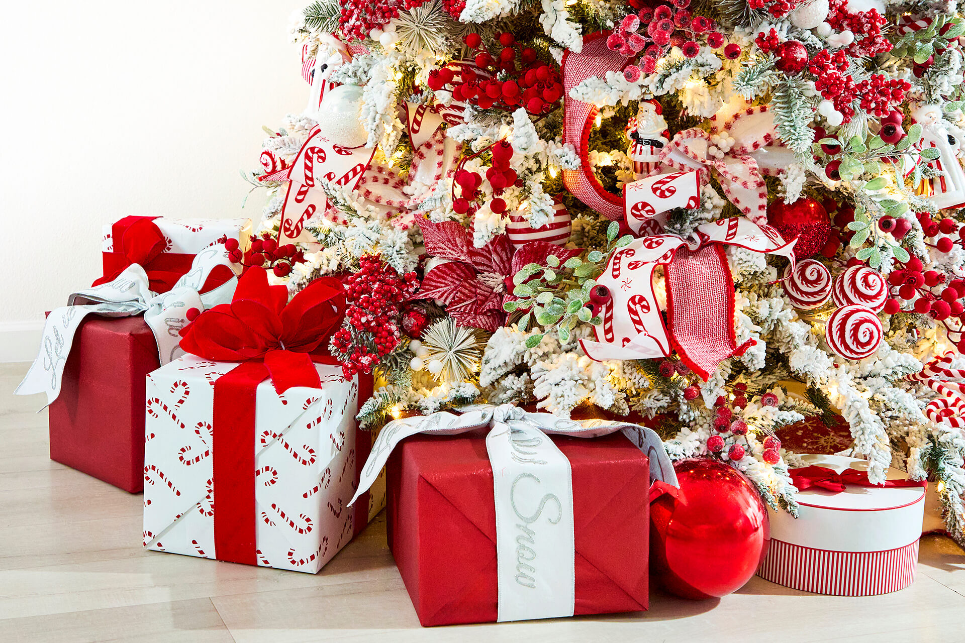 Each size comes curated with all the decor pieces you need: festive red and white sprays, coordinating ribbon, floral clusters, and charming red Christmas tree ornaments — with the perfect balance of playful peppermint elements and bright Christmas nostalgia. We ship the entire look straight to your door so you can decorate your own tree with these amazing techniques and decor elements! All your friends and neighbors will be amazed at how you were able to pull together this dynamic red Christmas tree design.