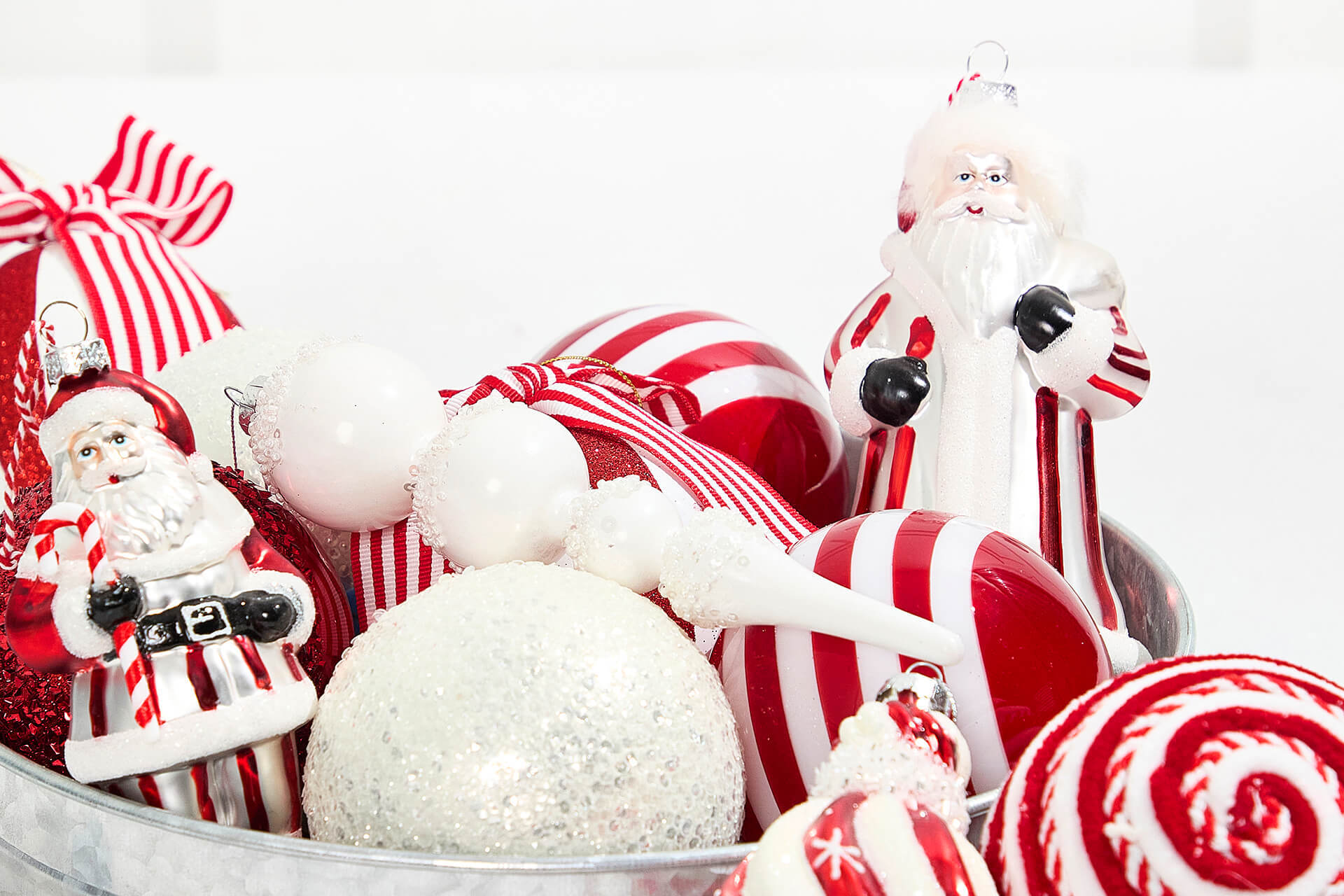 Ribbon is the secret to a rich, layered look! In this full Peppermint Christmas tree bundle, we use a combination of bold stripes and polka dots in traditional red and white patterns. Some quick tricks when using Christmas ribbon to decorate:
