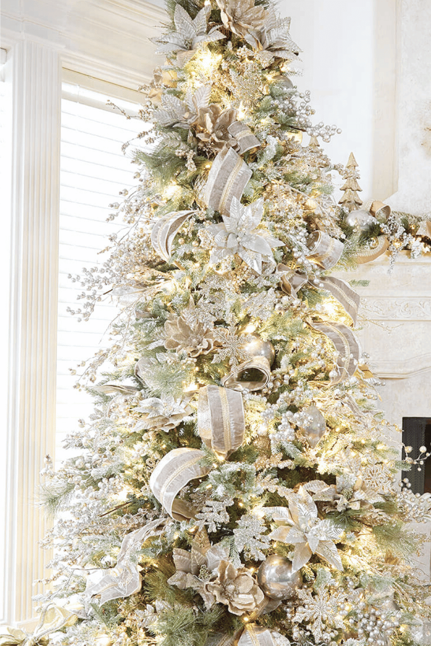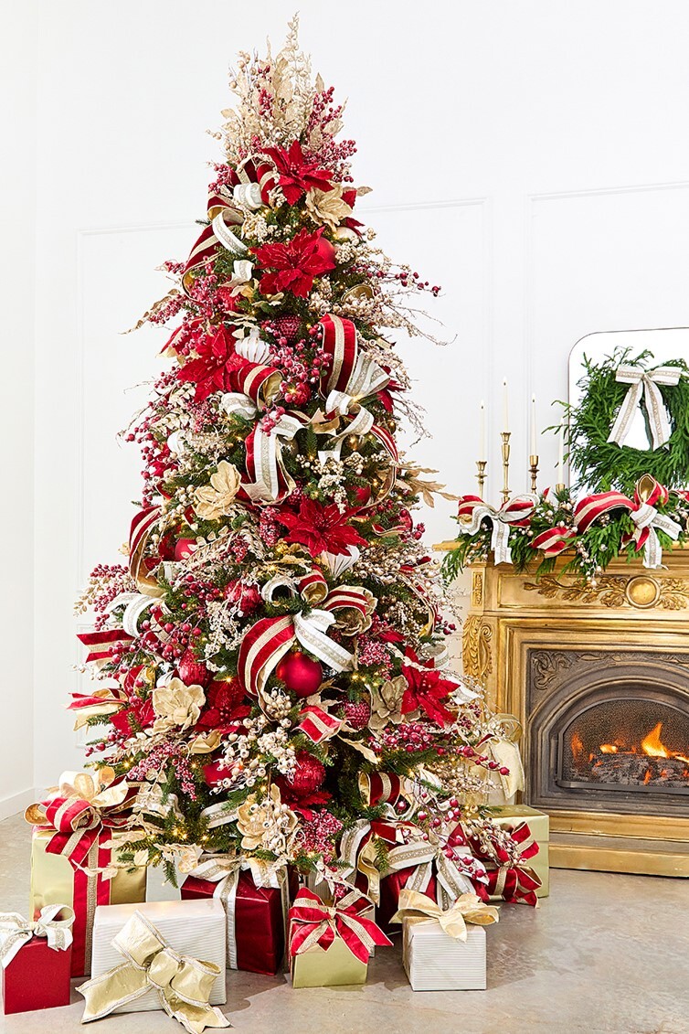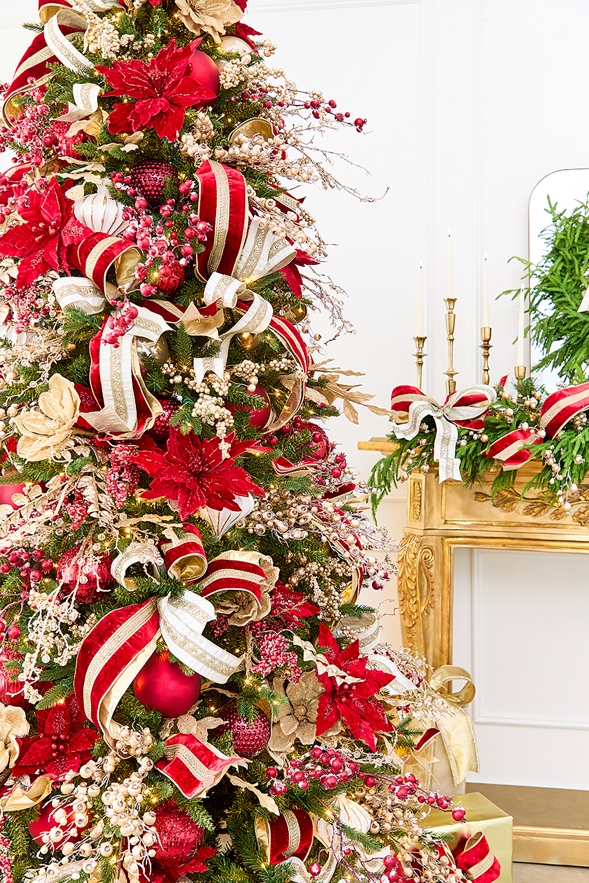 Our design team has curated packages of our most popular looks — taking all the guesswork out of the equation! Each bundle includes the flowers, ribbon, ornaments, and sprays needed to re-create the look for your tree’s height. Each full Christmas tree decor bundle is supplemented with tutorial videos to show you how to put it together. It’s so simple! Christmas tree, Christmas lights, and tree skirt are not included.