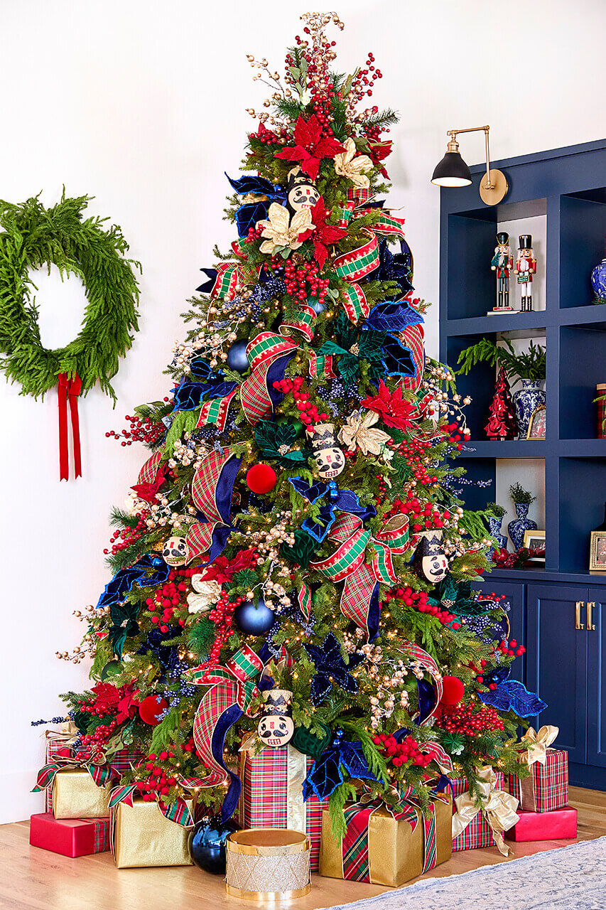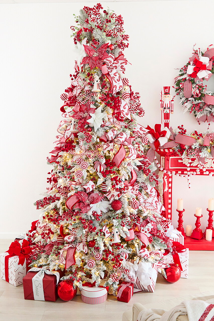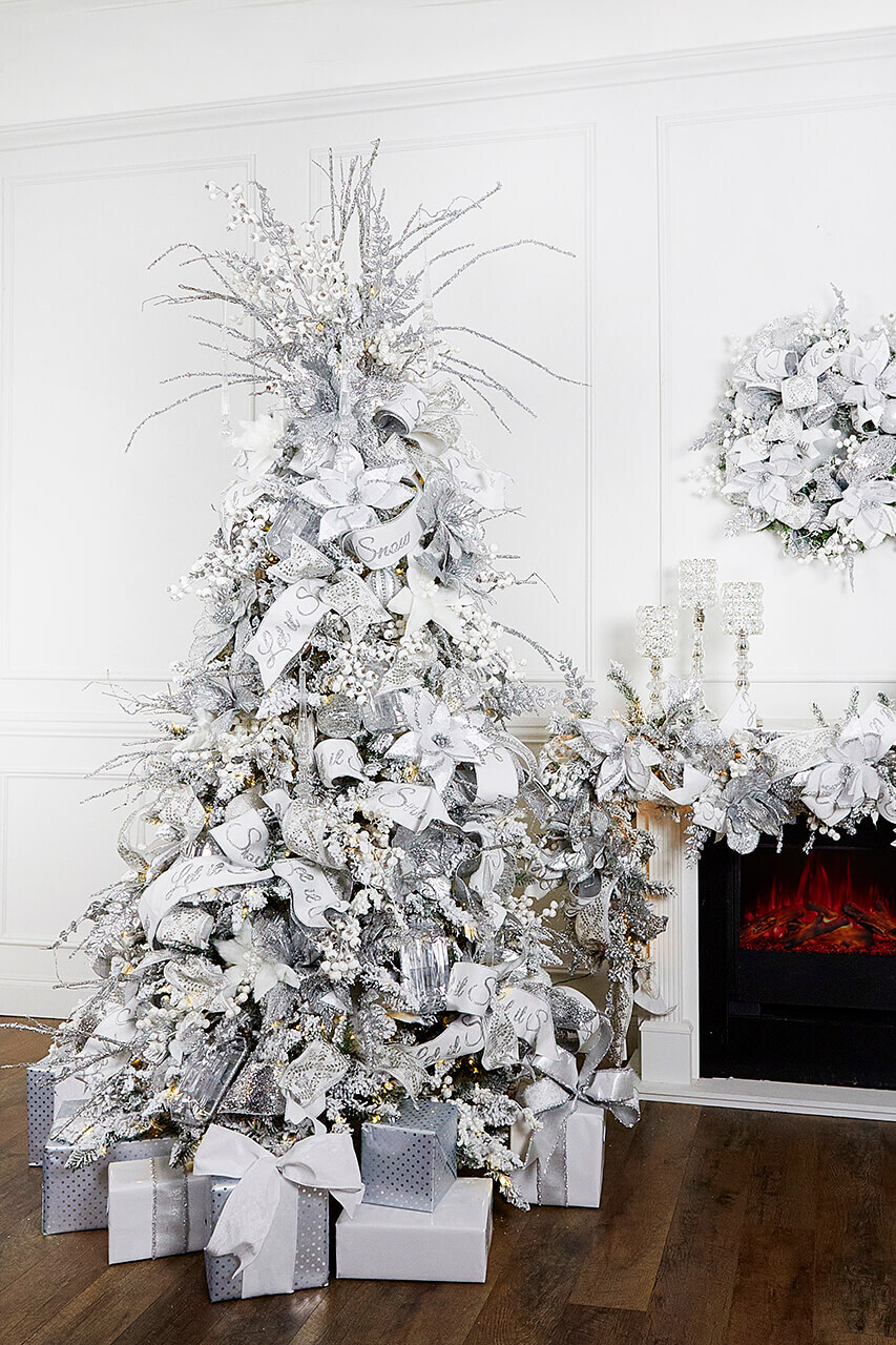 Our design team has curated packages of our most popular looks — taking all the guesswork out of the equation! Each bundle includes the flowers, ribbon, ornaments, and sprays needed to re-create the look for your tree’s height. Each full Christmas tree decor bundle is supplemented with tutorial videos to show you how to put it together. It’s so simple! Christmas tree, Christmas lights, and tree skirt are not included.