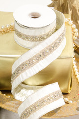 • 2.5" x 5 Yard Jewel Trim Dupioni Metallic Back Ribbon (Accent Ribbon) - 2 Rolls