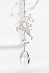 Immerse yourself in the mesmerizing dance of light and color with our 4.5” Reindeer Suncatcher. With the delicate metal reindeer accent, red jewels, and crystal, it is sure to enchant. Enjoy the sparkling spectacle that illuminates your day with every turn. It even comes nestled in an elegant silver organza gift bag to make gift-giving even more special.